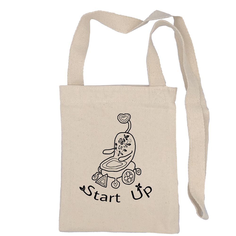 オーガニックコットン使用のシンプルなサコッシュ。カバンの口元にはボタンがついていて、ものが落ちないため安心!